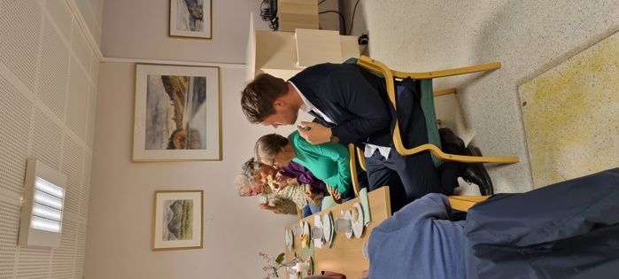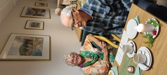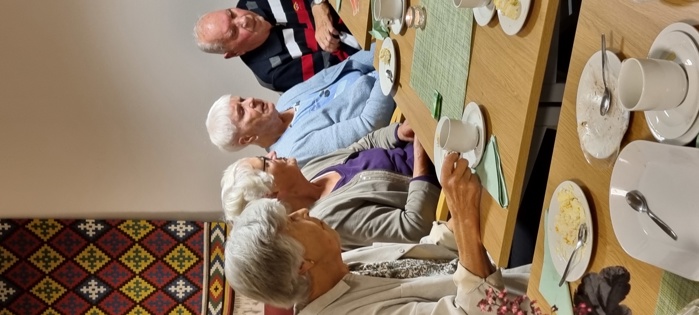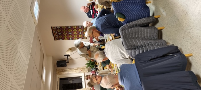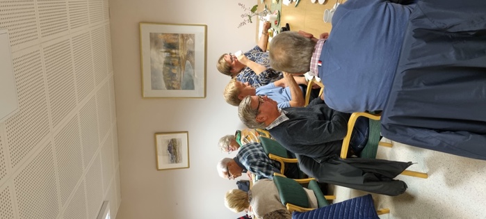 Praten gikk livlig rundt omkring på bordene, for vi har stort behov for å utveksle historier og minner fra vår lange arbeidstid, men synes også at pensjonisttida/samtida gir oss mye å snakke om. Dagens tema fikk også stor oppmerksomhet.