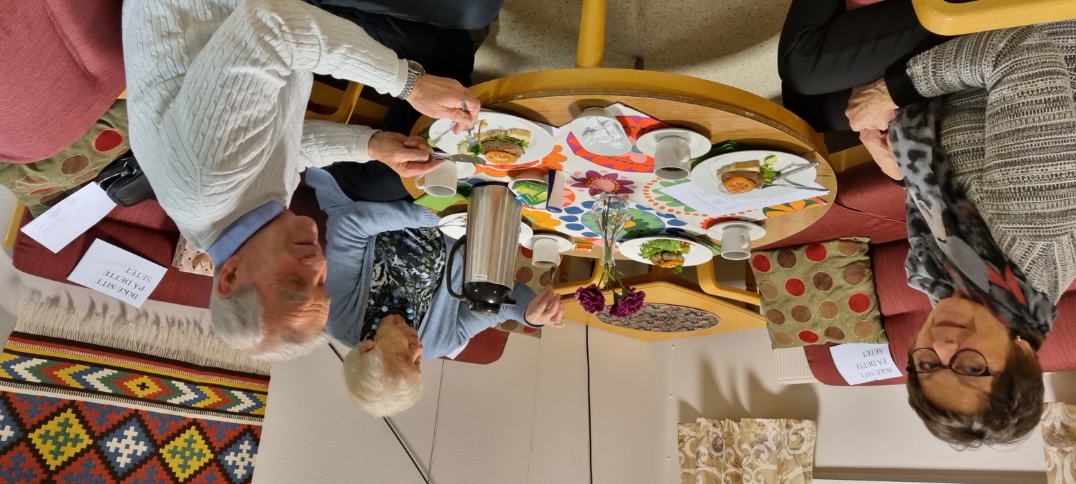 Etter årsmøtet ble det servert karbonadesmørbrød, fersk kringle og kaffe.